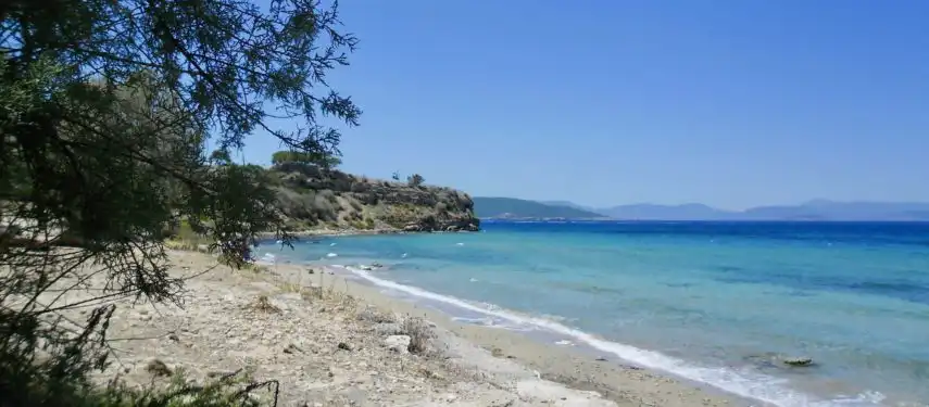 Denne lille strand ligger ved sydsiden af byen Perdika på Æginas sydvestlige spids. Stranden, der ligger i en lille bugt tæt på den lille havn, har både sand og småsten samt lidt træer til at danne skygge. Stranden i sig selv er ikke noget særligt, men området er ganske hyggeligt alligevel.