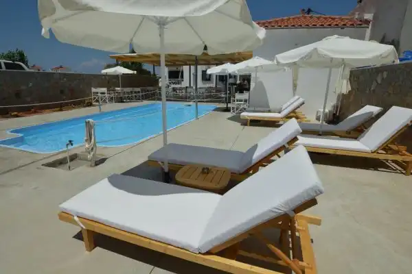 Dette lille hotel i Skala ligger lidt trukket tilbage fra stranden og alt sommer-halløjet. Her er pool, snackbar samt fine og enkle værelser med balkon og nogle med køkken. Der er en lille gåtur til stranden og caféer, spisesteder og indkøbsmuligheder er tæt på.