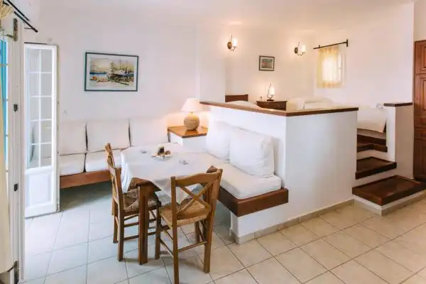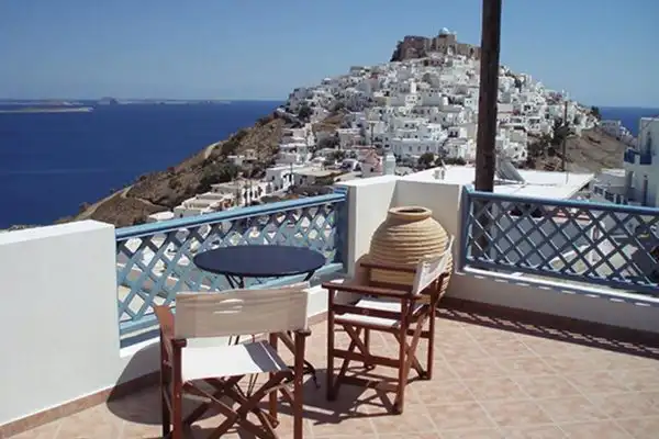 Dette lille fine hotel med studiolejligheder ligger højt placeret i Chora, så der er en flot udsigt til både havet og den flotte gamle by med fæstningen fra balkonerne. Værelserne er hyggelige og stedet ligger i et roligt område, hvor strand, caféer, spisesteder og butikker er indenfor gåafstand.