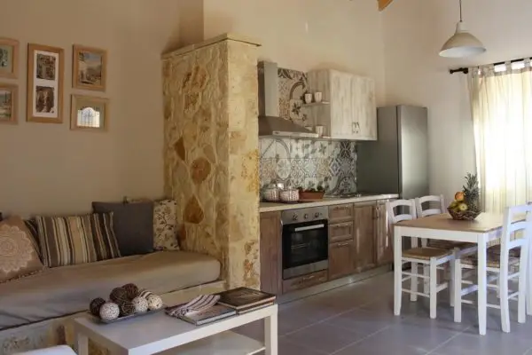 Denne hyggelige pension ligger udenfor Liapades by men nede bag stranden. Fra rolige omgivelser i en lille have, er der herlig udsigt til den flotte bugt. Der er 1 km til Liapades by med indkøbsmuligheder, caféer og spisesteder. Flere strande er indenfor gåafstand.