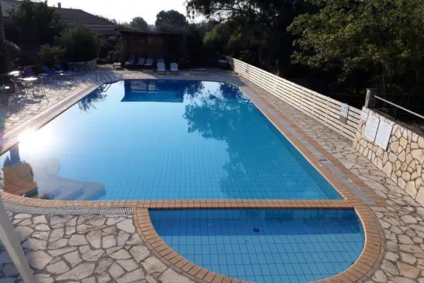 Cirka 4 km udenfor selve Pelekas by men tæt på en af Korfus bedste strande (Glyfada) ligger disse lejligheder med en super udsigt til strand og hav, og alligevel er der en pool. Der er hvad du skal bruge i lejligheden, og der er bar og restaurant på stedet. Ellers er der flere caféer, barer og spisesteder i nærheden.