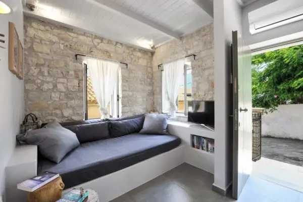Et lækkert nyt hotel i hjertet af Gaios, hvor man er tæt på strand, spisesteder og indkøbsmuligheder. Der er tænkt meget over indretningen, som er moderne, enkel og stilren i flot kombination med de rustikke vægge. Lejlighed med plads til op til fire personer og fuldt udstyret køkken.