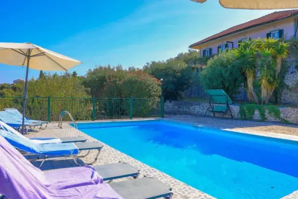 Denne villa ligger lidt udenfor Loggos og lidt inde i landet. Til gengæld har stedet pool, en fin terrasse, en herlig udsigt over havet og plads til fire personer. Der er ro og fred i de smukke udendørs omgivelser. Cirka en km til flere strande og to km til Loggos by.