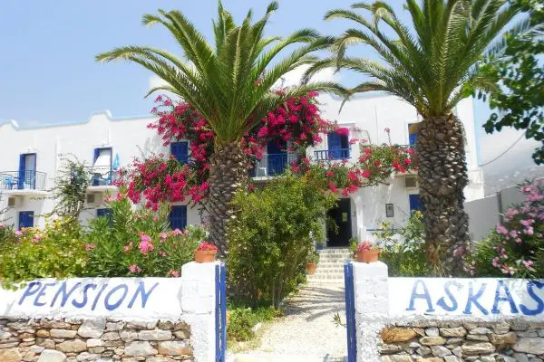 Dette hotel ligger bag havnen i Katapola, og her er man tæt på det hele. Der er forskellige værelsestyper, og alle er pæne og enkelt indrettede, og der er hvad man skal bruge. Nogle har havudsigt fra balkonen, andre har udsigt til den store, fine og frodige have, hvor det også er muligt at nyde livet i smukke omgivelser.