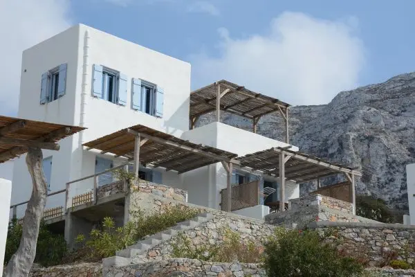 I udkanten af bjerglandsbyen Lagada ligger dette hotel med bungalows i rolige omgivelser. Alle lejligheder har herlig udsigt til bjerge og hav. De små bungalows med overdækkede terrasser er ganske fortryllende i deres kykladiske enkelhed. Der er gåafstand til den lille by med caféer og spisesteder. Stedet er et godt udgangspunkt for vandring i landskabet, og der er cirka 2 km til stranden i Aegiali.