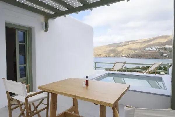 Dette ekslusive hotel ligger over havnebyen Aegiali og har en fantastisk udsigt over bugten fra alle lejligheder. Her er tale om lækre lejligheder med enkel og udsøgt stil med privat spa-bad/mini-pool og balkoner. Hotellet er “kun for voksne” og ligger tæt på flere strande og havnebyen med caféer, spisesteder og butikker.