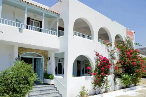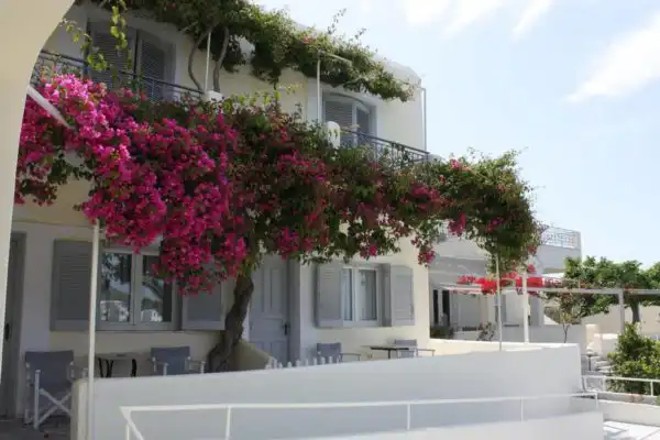 Dette hotel ligger lidt trukket tilbage i fra byens puls, og du kan derfor være sikker på at få nattero. Hotellet er fint med den enkle Kyklade-stil og har værelser med balkon, hvoraf nogle har udsigt mod havet. Der er morgenmadsbuffet. Byen med caféer, spisesteder og indkøbsmuligheder er indenfor gåafstand. Der 50 m til stranden.