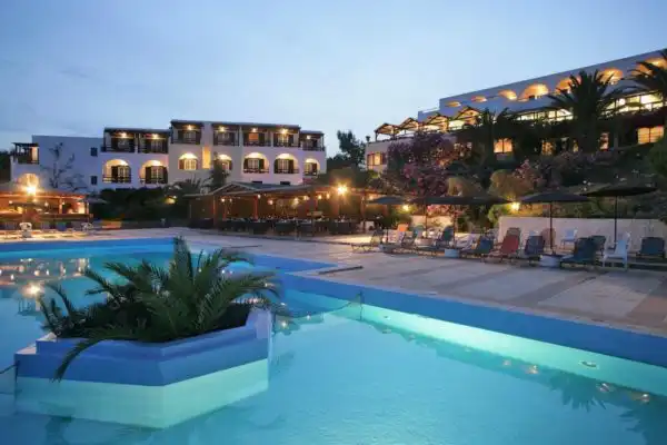 Dette er et større hotel af lidt ældre dato med en flot og yderlig beliggenhed i Gavrio-bugten lidt udenfor selve byen. Hotellet byder på en stor pool, børnepool, restauranter, snackbar, lille privat strand, lille legeplads, solterrasse og tennisbane. Der er 500 m ind til byen med caféer, spisesteder og indkøbsmuligheder.