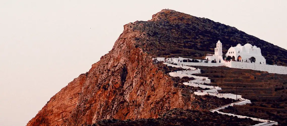 Har du set billeder Folegandros, er det svært ikke at ønske sig derhen. Folegandros’ landsbyer består ligesom på resten af Kykladerne af de klassiske hvide huse med farverige vinduer omkring smalle gader. De fleste steder med kig til havet. Øen er særligt kendt for det spektakulære syn af nogle af choraens (hovedbyens) huse beliggende helt ude ved kanten af en lodret klippevæg. Oppe over choraen, tæt på bjergets top, ligger en kirke. Vejen til denne kirke er en gangsti, der zig-zag’er opad bjerget. Dette imponerende syn er nærmest blevet synonymt med Folegandros og kan ses på billedet øverst.