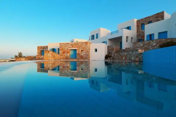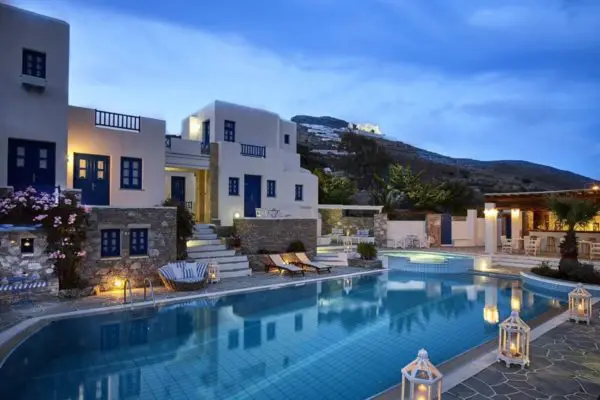 Med Miramare Hotel er vi oppe på øverste hylde, når det handler om luksus på Folegandros, men uden at det bliver ubetaleligt. Dette hotel har swimmingpool og en fantastisk beliggenhed i udkanten af choraen. Udsigten er ud over det sædvanlige og værelserne er indrettet enkelt og tro mod den græske stil.