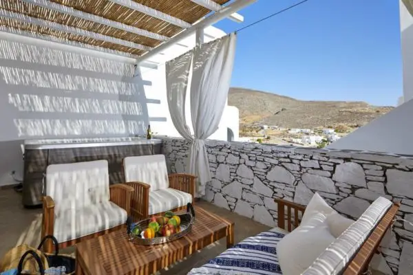 Har du lyst til fred og ro på et helt utroligt sted, så tjek ind i Green Luxury Villa på Folegandros’ nordlige del. Stedet er noget ganske særligt. Det ligger helt for sig selv udenfor Ano Meria og består af to lækkert indrettede huse. Der er smuk udsigt til landskab og hav.