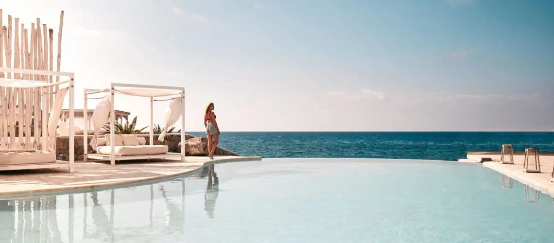 20 m fra stranden ligger Nefeli Sunset med de smukke solnedgange, man kan se fra hotellets terrasse. Prisniveauet på Nefeli er noget over, hvad man ellers kan finde på de græske øer, men kvaliteten er fulgt med hele vejen.