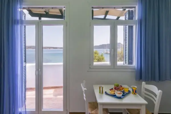 Niki Savvas ligger direkte ned til vandet ved den vestvendte kyst i Pollonia i et roligt område. Her er otte flotte værelser med balkon, de fleste med havudsigt. Nogle af værelserne har tekøkken. Gåafstand til caféer, restauranter og indkøb.