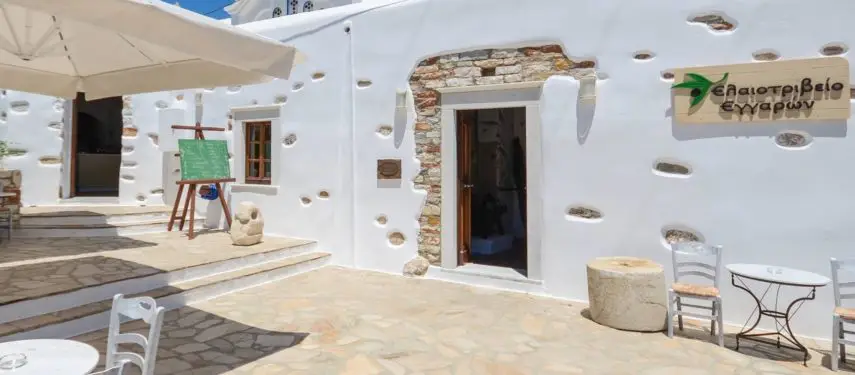 Oliventræet er nærmest synonym med Grækenland. Oliven og ikke mindst olivenolie har i årtusinder spillet en vigtig rolle i den græske kultur og gastronomi. På Naxos har der tidligere været mange olivenpresser, og et af dem er i dag indrettet som museum. Bygningen stammer fra midten af 1800-tallet og pressen var i brug indtil cirka 1960. I dag er det hele fuldt renoveret og givet et spændende indblik i kunsten at tappe olivenolie. Du kan selvfølgelig smage på tingene og købe forskellige lækre produkter. Her også en cafe.