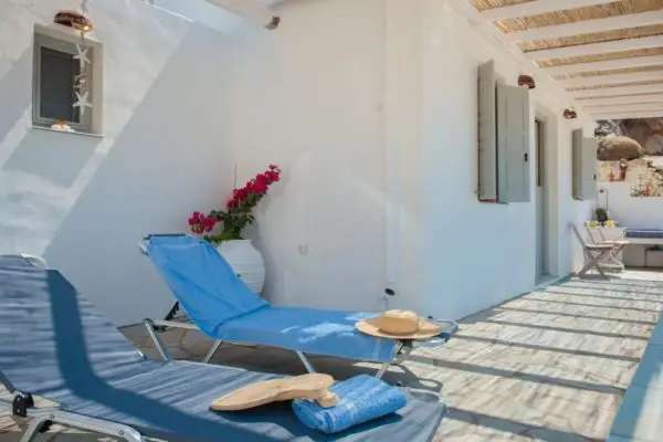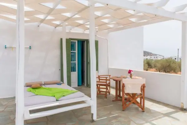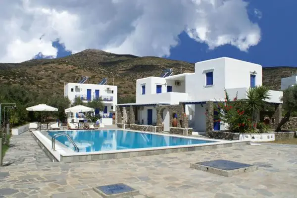 Et fremragende, lækkert, lille hotel indrettet i kykladisk stil. Det ligger 300 m. fra stranden i Kamares. Her er swimmingpool og snackbar samt fred og ro og en god atmosfære. Her tilbydes morgenmad ved poolen samt lette anretninger.