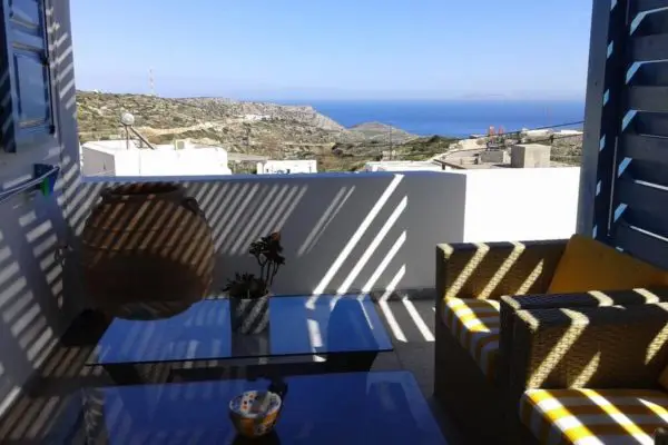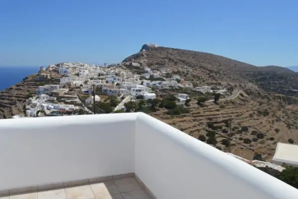 Dette flotte og fritstående feriehus ligger i et meget roligt område og højt oppe på Sikinos ved den gamle hovedby Chora og 4 km fra havnebyen. Udsigten herfra er helt utrolig. Huset er komplet med alt hvad du skal bruge og her er plads til 7 personer eller flere. Lækker stor terrasse og balkon.