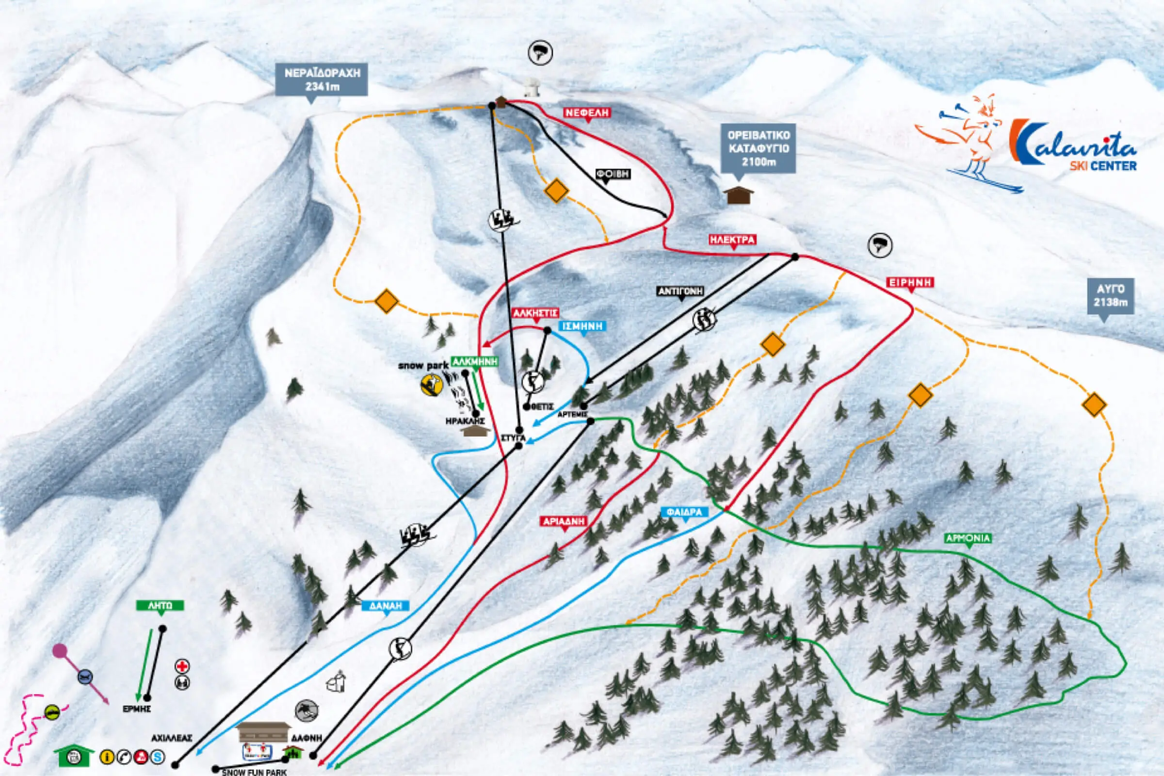Skisportsstedet er det andetstørste i Grækenland og byder på 13 forskellige pister med en sammenlagt længde på over 25 km, og har 8 lifte. 2 af pistene er for børn. Dertil er der skiskole, paragliding, skiudlejning, snowboarding, snescootere og snow park.